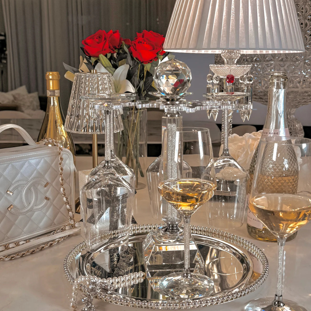 Unsere Gläser bestehen aus feinstem Kristallglas, sind handgeblasen und in aufwendiger Handarbeit veredelt. Jedes Glas ist ein Unikat und kann – je nach Modell – besondere Details wie Strasssteine, Vergoldungen oder kunstvolle Ornamente enthalten. Diese feinen Unterschiede machen jedes Stück zu einem echten Sammlerobjekt und betonen den luxuriösen Charakter.